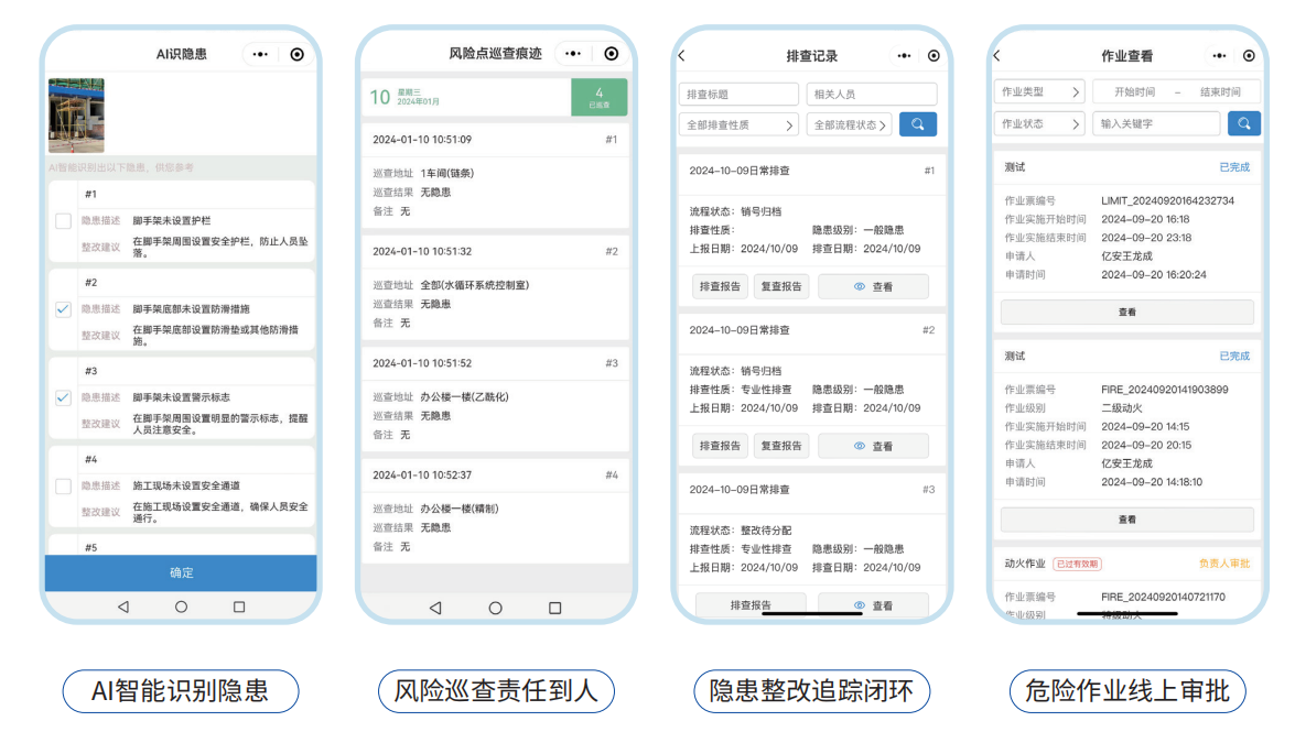 通過信息化流程運轉,借力班前會管理、風險巡查、隱患排查、工作待辦事項提醒等,有序規(guī)范日常工作執(zhí)行流程,實現(xiàn)安全管理合法合規(guī),降低企業(yè)安全管理經(jīng)營風險。