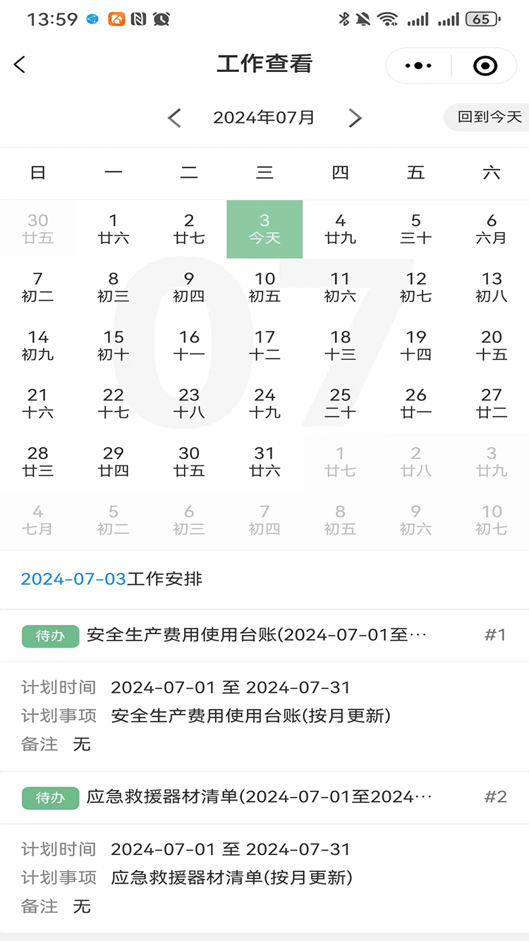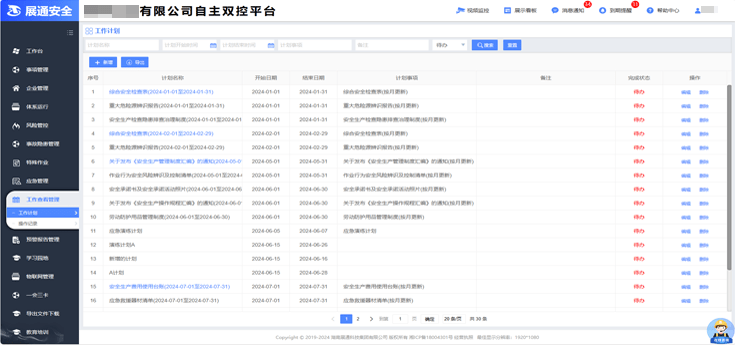 可根據(jù)需要及規(guī)則設定按月建立安全工作計劃,為安全管理提供便捷的管理工具。