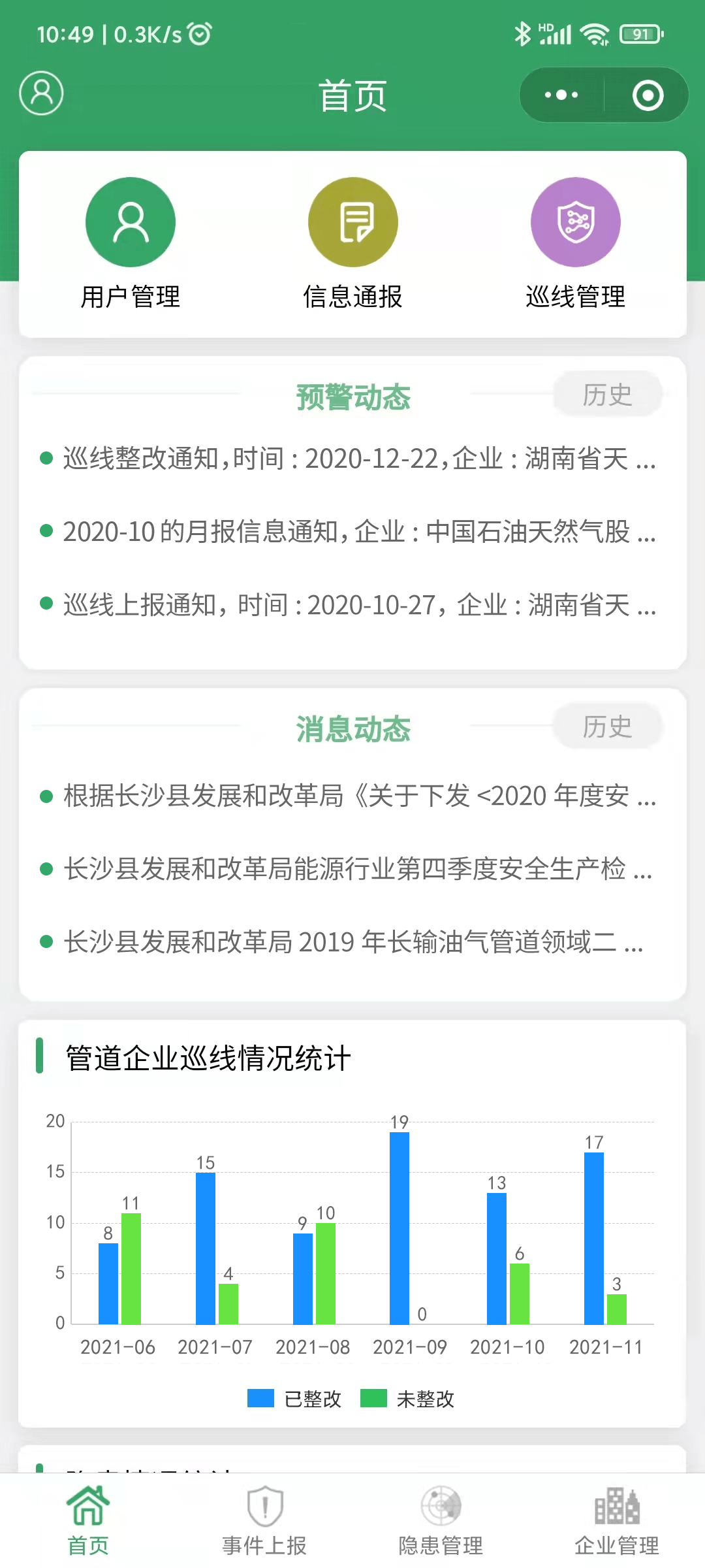 實時發(fā)布各類安全監(jiān)管通知信息,構(gòu)建良性有序的信息傳輸通道,加強安全監(jiān)管部門與管道企業(yè)之間的信息聯(lián)動,消除信息“孤島”。